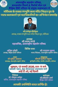 प्रथम अफ्रीकी क्षेत्रीय हिंदी सम्मेलन का आयोजन सम्पन्न (रिपोर्ट) मिस्र (Egypt) की राजधानी काहिरा में भारत के विदेश मंत्रालय द्वारा प्रथम अफ्रीकी क्षेत्रीय हिंदी सम्मेलन का आयोजन 8- 9 फरवरी 2026 को संपन्न हुआ। मिस्र के अलावा दक्षिण अफ्रीका, नाइजीरिया, जांबिया, केन्या, तंजानिया ,मॉरीशस आदि देशों के हिंदी लेखकों एवं शिक्षकों की भागीदारी रही। सम्मेलन […]