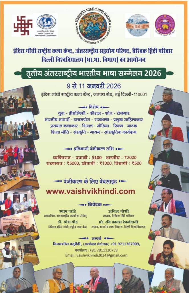 Organized by Antarrashtriya Sahayog Parishad, Vaishvik Hindi Parivar, Gandhi National Center for the Arts and Delhi University (Dept of Indian Languages)