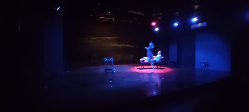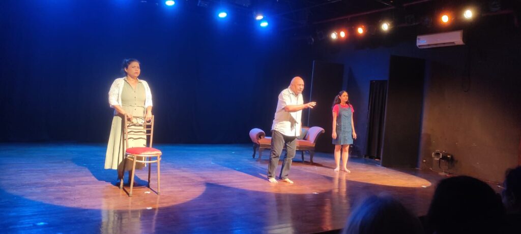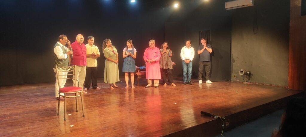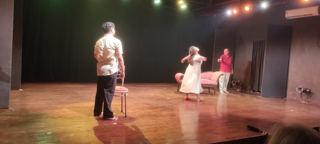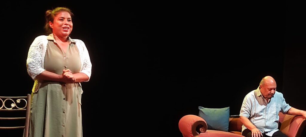 पहली कहानी का मंचन बहुत सहज था और पात्र स्वयं ही कहानी कहते हुए बीच में संवाद भी कह देते थे । पूरे मंच पर मात्र एक कुर्सी व एक छोटे से सोफे के सेट पर सभी पात्रों ने अपना अधिकतम दिया। कहीं भी ऐसा नहीं लगा कि पात्र “लाउड “ हो रहें हैं या फिर कहानी की प्रस्तुति स्तरीय नहीं है।