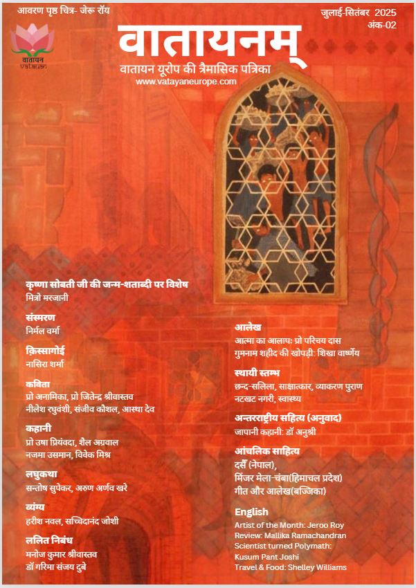 प्रिय पाठकों, नमस्ते, वातायनम् पत्रिका का जुलाई-अक्टूबर 2025 अंक वेबसाईट पर अपलोड कर दिया गया है। कृपया पढ़ें और अपनी राय भी दें। धन्यवाद।