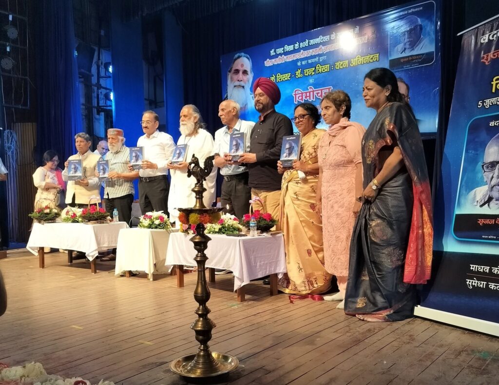 हरियाणा उर्दू अकादमी के निदेशक, वरिष्ठ साहित्यकार एवं बहुआयामी प्रतिभा के धनी डॉ चन्द्र त्रिखा जी के व्यक्तित्व और कृतित्व पर डॉ माधव कौशिक, अध्यक्ष, केन्द्रीय साहित्य अकादमी और डॉ सुमेधा कटारिया, हरियाणा कैडर की वरिष्ठ आई. ए. एस अधिकारी के संपादन में ‘वंदन अभिनंदन – सृजन के शिखर – चन्द्र त्रिखा’ का प्रकाशन हुआ है।