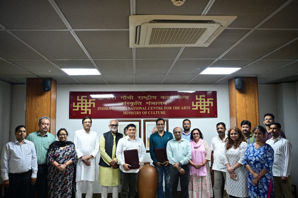 इंदिरा गाँधी राष्ट्रीय कला केन्द्र और आदिवासी अनुसंधान और ज्ञान केंद्र (टीआरकेसी), नई दिल्ली, ने आदिवासी अनुसंधान और अनुसूचित जनजातियों से संबंधित मुद्दों पर सहयोग करने के लिए 14 जुलाई 2025 को एक समझौता ज्ञापन पर हस्ताक्षर किए। समारोह की अध्यक्षता डॉ. सच्चिदानंद जोशी, सदस्य सचिव, आईजीएनसीए और श्री हर्ष चौहान पूर्व अध्यक्ष, राष्ट्रीय अनुसूचित जनजाति आयोग द्वारा की गई थी। मौजूद थे प्रो. अनिल कुमार, विभाग के प्रमुख, जनपद सम्पदा, प्रो. विवेक कुमार, महासचिव, टीआरकेसी और डीन, आईआईटी दिल्ली, किरण जी, अभिनव प्रकाश, श्री अनुराग पुनेथा, मीडिया नियंत्रक आईजीएनसीए, प्रो. मॉली कौशल, जेएस डिवीजन और आईजीएनसीए के संकाय और कर्मचारियों के साथ- आदिवासी अनुसंधान और ज्ञान-साझाकरण को आगे बढ़ाने की दिशा में एक महत्वपूर्ण कदम को चिह्नित करते हुए।