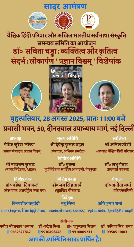 Post navigation तमिलनाडु हिंदी साहित्य अकादमी का आयोजन – (सूचना) हिंदी दिवस के अवसर पर ऑस्ट्रेलिया में ‘बाल राष्ट्रीय कविता प्रतियोगिता 2025’ – (सूचना)