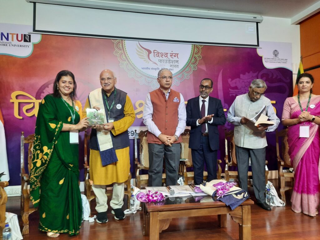 विश्व रंग के स्वप्न दृष्टा श्री संतोष चौबे, निदेशक, विश्व रंग एवं कुलाधिपति, रबीन्द्रनाथ टैगोर विश्वविद्यालय ने सर्वप्रथम विश्व रंग की दृष्टि पर प्रकाश डालते हुए कहा कि मुझे यह कहते हुए बड़ा गर्व है, कि हिंदी विश्व की तीसरी भाषा के रूप में जानी जाती है। हम पिछले 40 वर्षों से हिंदी के संरक्षण, संवर्धन, और प्रचार प्रसार की दिशा में निरंतर कार्य कर रहे हैं। हमारा मानना है कि मनुष्य और समाज को रचनात्मक रूप से बदलने की ताकत कला, संस्कृति, साहित्य और भाषा में होती है।
