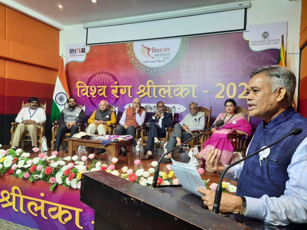 विश्व रंग श्रीलंका–2025 का भव्य शुभारंभ विश्व रंग फाउंडेशन (भारत), रबीन्द्रनाथ टैगोर विश्वविद्यालय, भोपाल (भारत), स्वामी विवेकानंद सांस्कृतिक केंद्र, भारतीय उच्चायोग, कोलंबो, श्रीलंका के संयुक्त तत्वावधान में स्वामी विवेकानन्द सांस्कृतिक केन्द्र, भारतीय उच्चायोग, कोलंबो (श्रीलंका) में अतिथियों द्वारा दीप प्रज्ज्वलित कर समारोह पूर्वक किया गया।