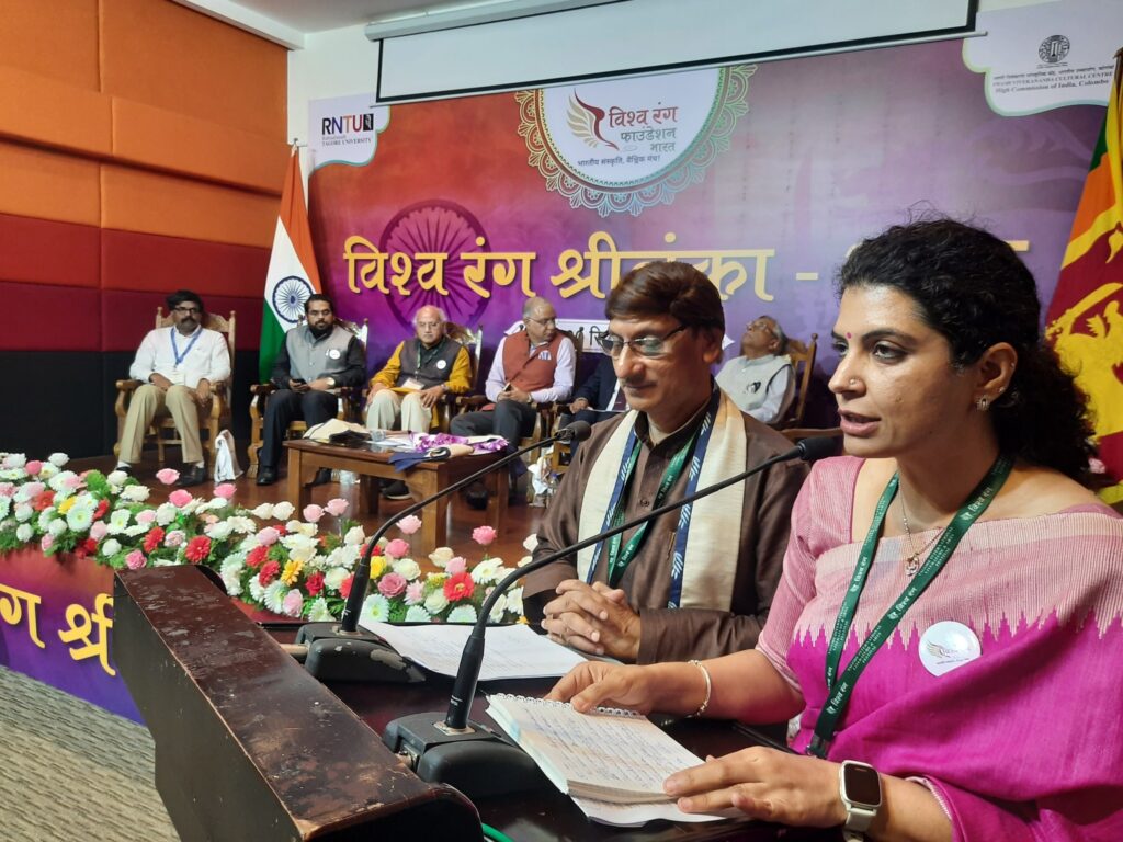 स्वागत उद्बोधन श्री अंकुरण दत्ता, निदेशक, विवेकानंद सांस्कृतिक केंद्र, श्रीलंका एवं डॉ. अदिति चतुर्वेदी वत्स, निदेशक, विश्व रंग फाउंडेशन (भारत) द्वारा दिया गया।