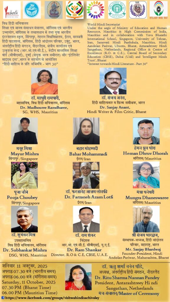 आभासी कार्यक्रम/Virtual Program : “हिंदी साहित्य के प्रति अभिरुचि- भाग 30” /”Interest towards Hindi Literature – Part 30”