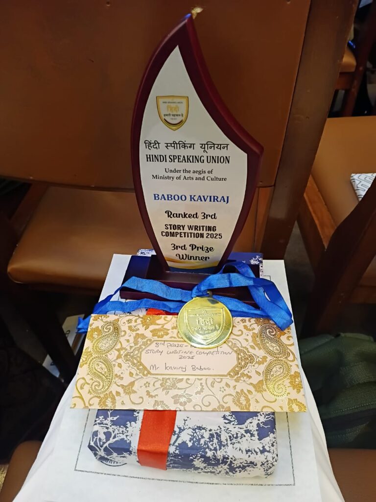 हाल ही में हिंदी स्पीकिंग यूनियन द्वारा आयोजित कहानी लेखन प्रतियोगिता में मुझे भाग लेने का सुअवसर प्राप्त हुआ और सौभाग्य से मेरी कहानी; ‘आंदोलन’ को तृतीय पुरस्कार मिलाl इसके लिए मैं हिंदी स्पीकिंग यूनियन का तथा संघ की प्रधाना डॉ. अंजलि चिंतामणि का आभारी हूँl