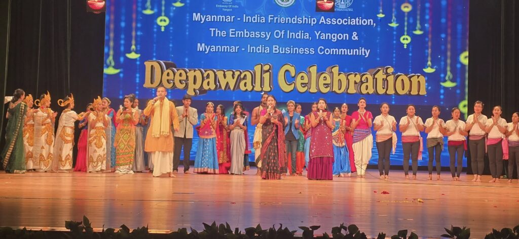 “सीमाओं को लांघती दीपावली की ज्योति” का अद्भुत दृश्य कल यांगून के नेशनल थिएटर में देखने को मिला, जब म्यांमार-इंडिया फ़्रेंडशिप एसोसिएशन और भारत का राजदूतावास, यांगून ने संयुक्त रूप से दीपावली उत्सव का भव्य आयोजन किया। यह समारोह न केवल भारत की सांस्कृतिक विविधता का प्रदर्शन था, बल्कि भारत और म्यांमार के बीच सद्भाव, एकता, और भ्रातृत्व की अमर भावना का प्रतीक भी बना।