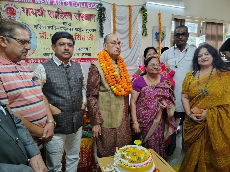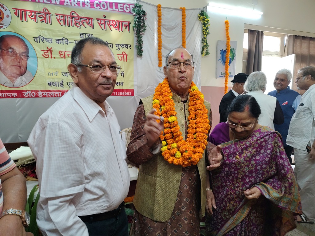 दिनांक 02.11.2025 को ऐतिहासिक दिल्ली की प्रतिष्ठित शिक्षण संस्थान दिल्ली विश्वविद्यालय के उतरी परिसर से सटे शक्ति नगर चौक के नजदीक वर्षों से स्थित शर्मा न्यू आर्ट्स कॉलेज के सभागार में गायत्री साहित्य संस्थान के तत्वावधान में संस्थापिका डॉ हेमलता बबली वशिष्ठ द्वारा वरिष्ठ कवि एवं पत्रकार श्रद्धेय गुरूवर डॉ धनंजय सिंह जी के 81वें जन्मदिन (जो प्रत्येक वर्ष 29 अक्टूबर को होता है) के उपलक्ष्य में “बधाई एवं शुभकामना उत्सव” का भव्य आयोजन किया गया।