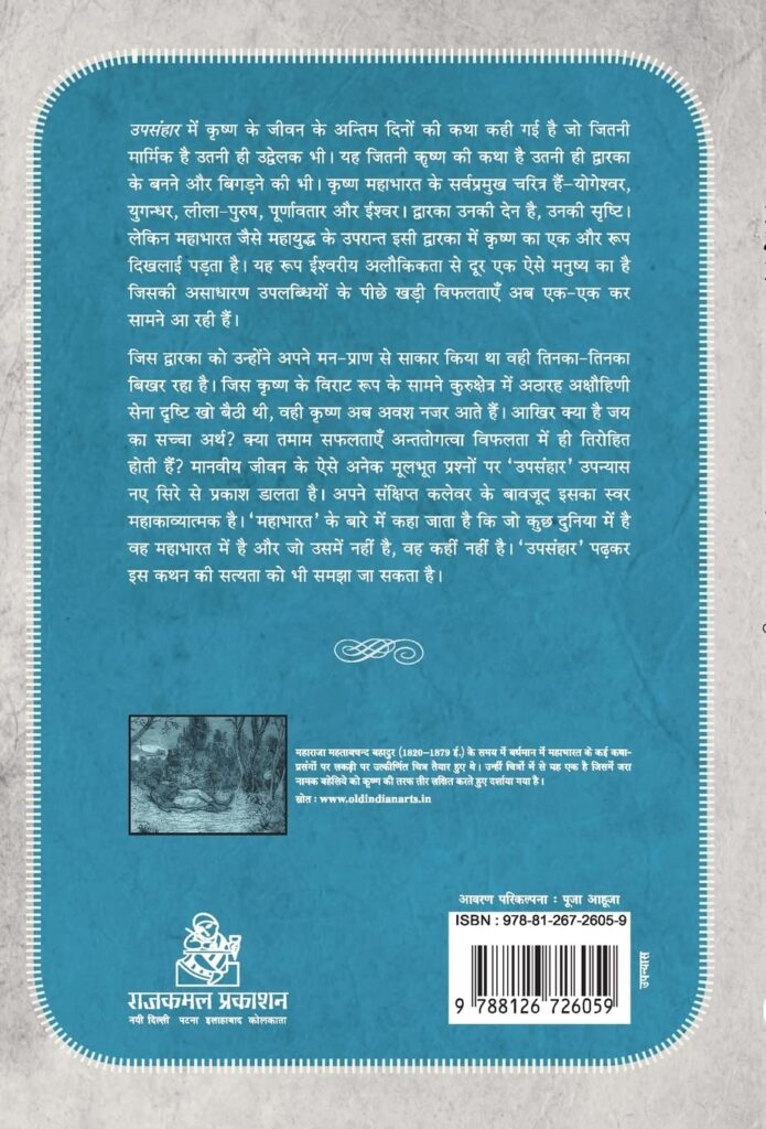 उपसंहार एक ऐसी कथा है जो कृष्ण को हमारे सामने एक विरक्त राजा और उदास मनुष्य के रूप में प्रस्तुत करती है। यह कहानी उस समय की है जब महाभारत का युद्ध समाप्त हो चुका है। नारायणी सेना लौट रही है, और कृष्ण भी। लेकिन यह वापसी विजय की नहीं, विषाद की है।