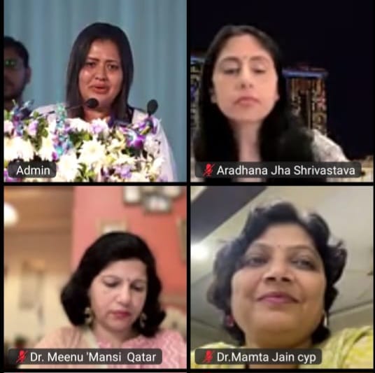 कार्यक्रम के ऑनलाइन सत्र की अध्यक्षता नीदरलैंड की वरिष्ठ साहित्यकार, संवेदनाओं की कवयित्री प्रो. पुष्पिता अवस्थी जी ने की एवं मुख्य अतिथि सिंगापुर से सुप्रसिद्ध साहित्यकार तथा दर्शन एवं आध्यात्म में गहरी पैठ रखने वाली प्रो. मृदुल कीर्ति जी थी।