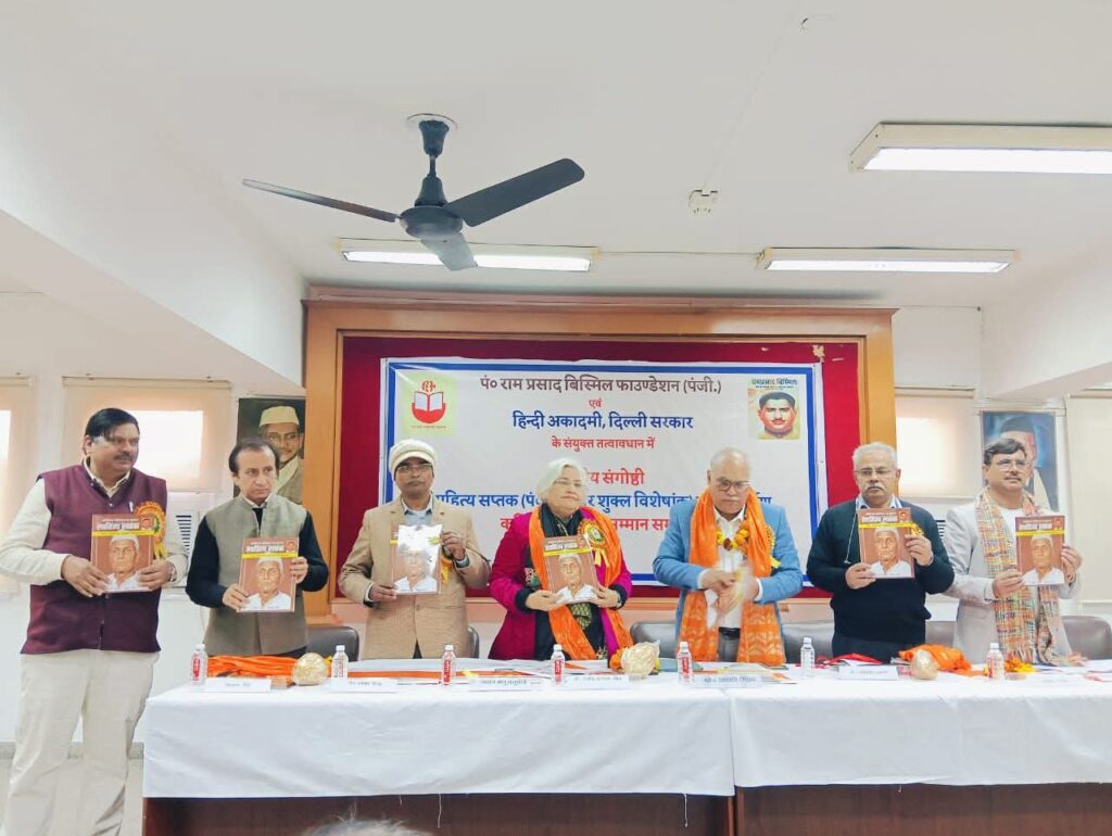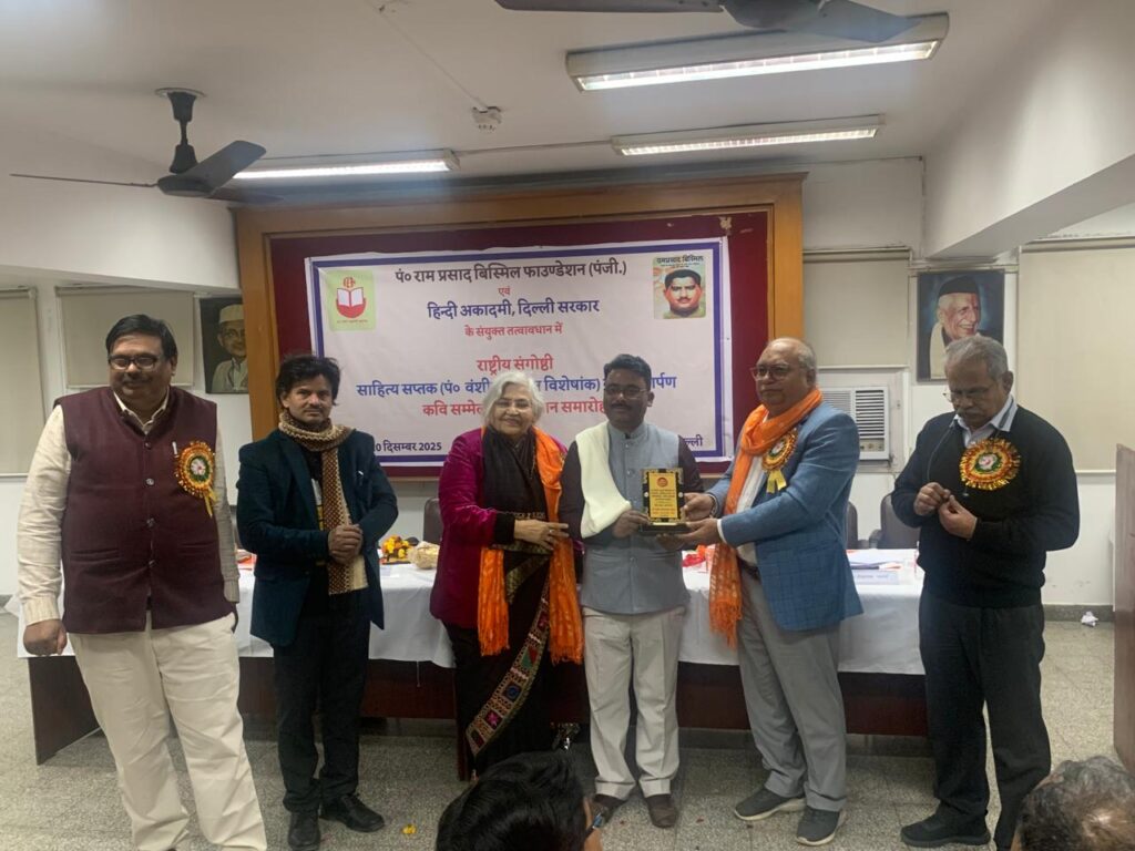 दिल्ली : हिन्दी भवन में “पं० रामप्रसाद बिस्मिल और उनके साथियों का स्वतंत्रता संग्राम में योगदान” विषय पर राष्ट्रीय संगोष्ठी, साहित्य सप्तक (पं० वंशीधर शुक्ल विशेषांक) का लोकार्पण और सम्मान समारोह का आयोजन सम्पन्न हुआ। इस अवसर पर कवि सम्मेलन का आयोजन किया गया।