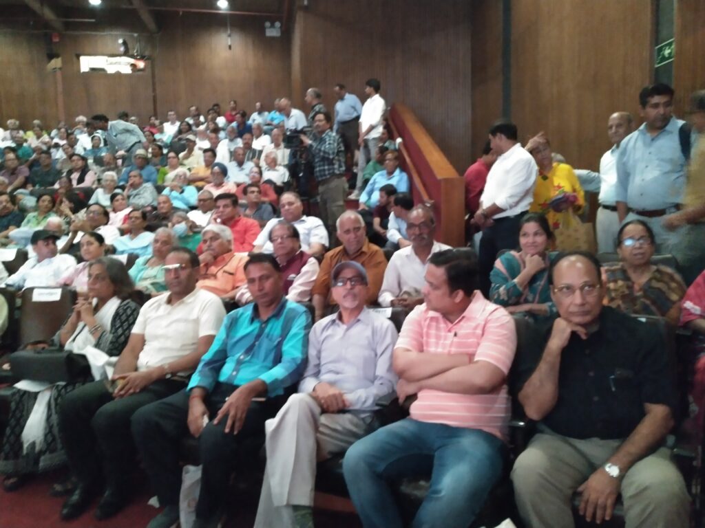 सभागार की श्रोता-दीर्घा में उपस्थित गणमान्य विभूतियों में वरिष्ठ साहित्यकार एवं बिरला फाउंडेशन के निदेशक डॉ सुरेश ऋतुपर्ण, दिल्ली विश्वविद्यालय के खालसा कॉलेज की प्रोफेसर तथा शतायु वरिष्ठ साहित्यकार एवं कवि श्री रामदरश मिश्र की सुपुत्री डॉ स्मिता मिश्र, गज़लकार श्री ताराचंद शर्मा, गीतकार श्री शशिकांत, श्री मनोज शैलेन्द्र एवं श्री रामबिलास शर्मा जी के पारिवारिक सदस्य, मीडियाकर्मी श्रीमती अनीता सेठी वर्मा, कवयित्री श्रीमती ममता मिश्रा तथा आकाशवाणी-दूरदर्शन कलाकार, सेवानिवृत्त बैंक अधिकारी, अधिवक्ता एवं गद्य-लेखक श्री कुमार सुबोध इत्यादि प्रमुख रहे।